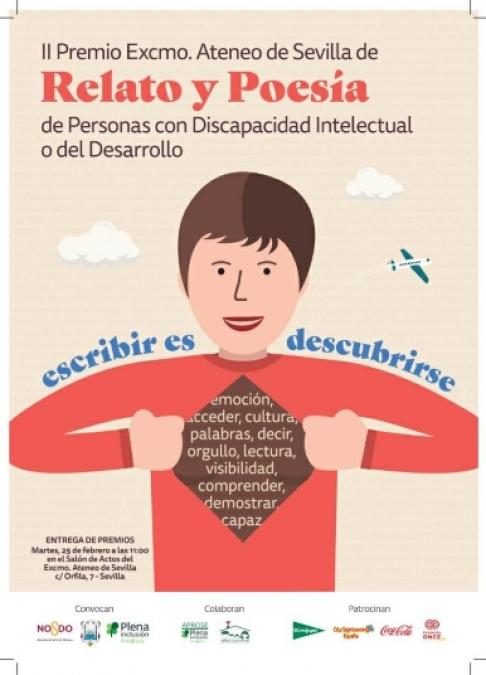 El martes 25 de febrero a las 11 horas tendrá lugar la entrega de Premios Ateneo de Sevilla de Relato Corto y Poesía para Personas con Discapacidad Intelectual o del Desarrollo en el Salón de Actos del Ateneo de Sevilla.