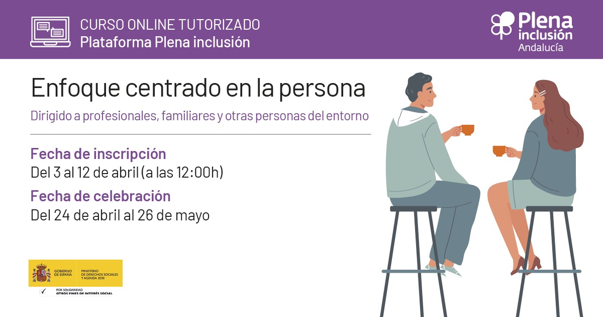 Plena inclusión Andalucía abre el proceso de inscripción al curso online tutorizado Enfoque centrado en la persona, a través de la Plataforma de Formación de Plena inclusión.