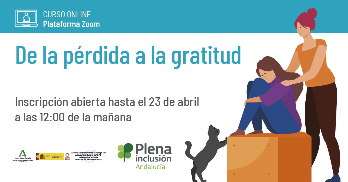 Plena inclusión Andalucía, a través del área de Apoyo a Familias, lanza una nueva actividad online denominada ‘De la pérdida a la gratitud’, dirigida a familiares de personas con discapacidad intelectual o del desarrollo. En ella se abordarán cuestiones como la normalización de la pérdidad como una oportunidad de aprendizaje y crecimiento, el proceso de duelo y estrategias para acompañar ante la pérdida.