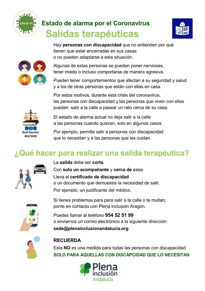 Nuestros compañeros de Plena inclusión Aragon han elaborado un documento explicativo con información importante sobre salidas terapéuticas que hemos adaptado desde Plena inclusión Andalucía con nuestros datos de contacto.