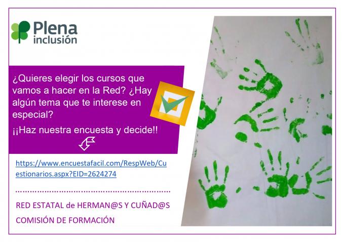 Con esta iniciativa la Red Estatal de Herman@s del movimiento asociativo de Plena inclusión quiere recabar datos sobre las necesidades e intereses de formación específicas de los familiares de personas con discapacidad intelectual o del desarrollo.