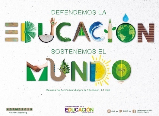Con motivo del Día de la Educación (24 de enero) y del  Día Mundial de la Educación Medioambiental (26 de enero) y bajo el lema Defendemos la educación, sostenemos el mundo”,  llega un año más la Semana de Acción Mundial por la Educación, #SAME2019. La Campaña Mundial por la Educación reivindica en esta ocasión el papel de la educación en la construcción de un mundo más sostenibleDel 1 al 7 de abril, la Semana de Acción Mundial por la Educación (SAME) se celebrará en más de 100 países. En España tendrán lugar distintas actividades de movilización en centros educativos y espacios públicos de más de 30 ciudades de todo el país, en los que se prevé la participación de más de 40.000 personas. Los niños y niñas participantes construirán “scrabbles” de la sostenibilidad con letras elaboradas por ellos mismos con materiales reciclados, tal y como se ve en el vídeo de la SAME 2019 y en el cartel de la campaña.