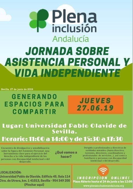 El próximo 27 de Junio se celebrará la primera Jornada sobre Asistencia Personal y Vida independiente, cuyas plazas son limitadas y tiene como plazo de inscripción hasta el 24 de junio a las 12:00h.