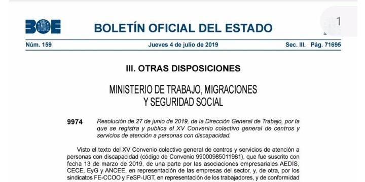Tras la publicación del XV Convenio Colectivo General de Centros y Servicios de Atención a personas con Discapacidad a comienzos de este mes de julio, Plena inclusión Andalucía celebrará una sesión informativa en la que se analizarán las principales novedades del convenio. Entre ellas, la clasificación profesional, el complemento de desarrollo o la cláusula de inaplicación. Por supuesto, todas aquellas dudas que quieran plantear serán resueltas por Doña Raquel Manjavacas, gerente de AEDIS y Don Torcuato Recover, asesor jurídico de Plena inclusión Andalucía, que serán las personas encargadas de dinamizar la sesión.