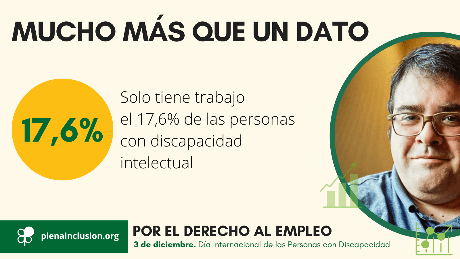 Sevilla, 2 de diciembre de 2022-. Plena inclusión Andalucía se suma a Plena inclusión España en su denuncia de la grave situación en el empleo de las personas con discapacidad intelectual y del desarrollo a través de la campaña “Mucho más que un dato” que visibiliza datos alarmantes, además de los testimonios que comparten las propias personas con discapacidad intelectual y del desarrollo (autismo, síndrome de Down y parálisis cerebral). Lo hace con motivo del Día Internacional de las Personas con Discapacidad que se celebra el próximo sábado 3 de diciembre.
