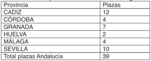 La relación de las plazas en Andalucía por provincias son las siguientes: