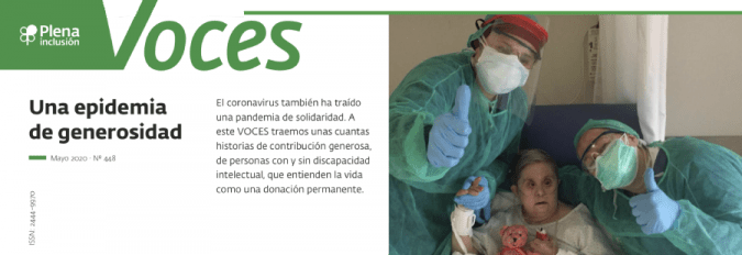 El coronavirus también ha provocado una pandemia de solidaridad. En el VOCES 448 que acaba de publicar Plena inclusión, podrás leer un reportaje que reúne historias de contribución generosa, de personas con y sin discapacidad intelectual, que entienden la vida como una donación permanente.